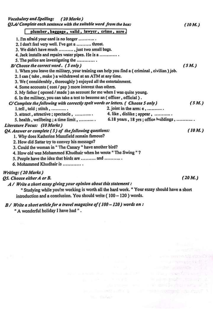 اسئلة اللغة الانكليزية الوزارية للصف السادس الاعدادي الدور الاول ٢٠٢٢-٢٠٢٣